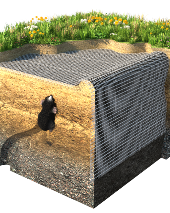 Een diervriendelijke oplossing tegen molshopen. Het mollengaas zorgt voor een extra laag tussen de grond en het gazon, waardoor mollen geen kans krijgen in tuin- en landschapsarchitectuur.
